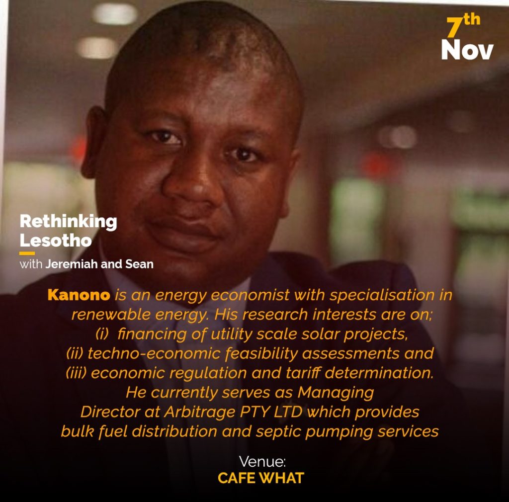The seminar will be hosted quarterly at Café What? by Jeremiah and Sean. Jeremiah is a stand-up comedian, brand ambassador, and radio presenter in Lesotho. He has his own comedy platform (Gags and Music) and currently hosts a radio show (#CatchMeIfYouCan) on Sky Alpha Radio — the first and only digital radio in the country. Sean is an economic historian of southern Africa. He works on the history of commerce in Lesotho, development of mobile money in Diepsloot (South Africa), and history of the Southern African Customs Union, focusing on relations between Lesotho and South Africa, 1870s – 1960s.
