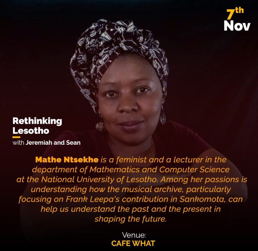 Mathe is a feminist and a lecturer in the department of Mathematics and Computer Science at the National University of Lesotho. Among her passions is understanding how the musical archive, particularly focusing on Frank Leepa’s contribution, can help us understand the past and the present in shaping the future.