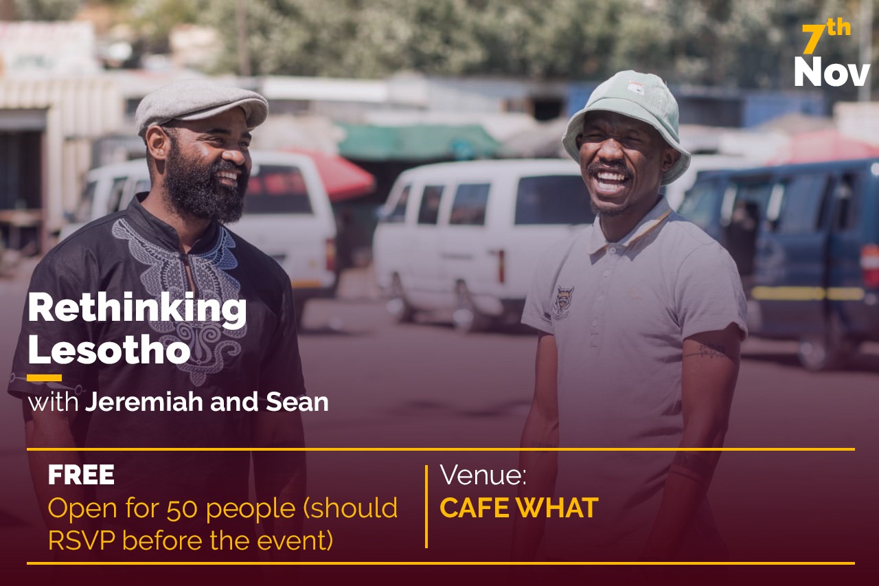 The seminar will be hosted quarterly at Café What? by Jeremiah and Sean. Jeremiah is a stand-up comedian, brand ambassador, and radio presenter in Lesotho. He has his own comedy platform (Gags and Music) and currently hosts a radio show (#CatchMeIfYouCan) on Sky Alpha Radio — the first and only digital radio in the country. Sean is an economic historian of southern Africa. He works on the history of commerce in Lesotho, development of mobile money in Diepsloot (South Africa), and history of the Southern African Customs Union, focusing on relations between Lesotho and South Africa, 1870s – 1960s.