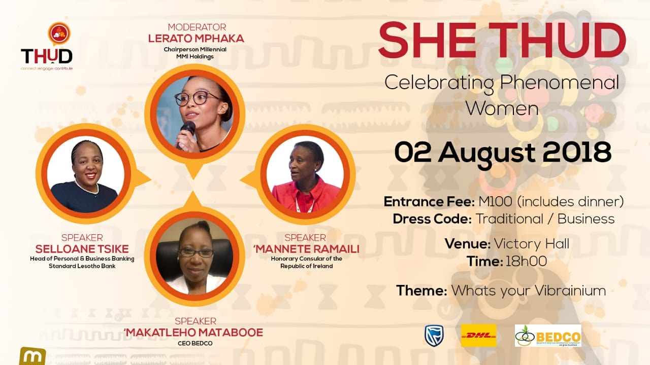 THUD will be at Victory Hall graced by a panel of one of the country’s female thought leaders; Lerato Mphaka, Selloane Tsike, ‘Mannete Ramaili and ‘Makatleho Matabooe.