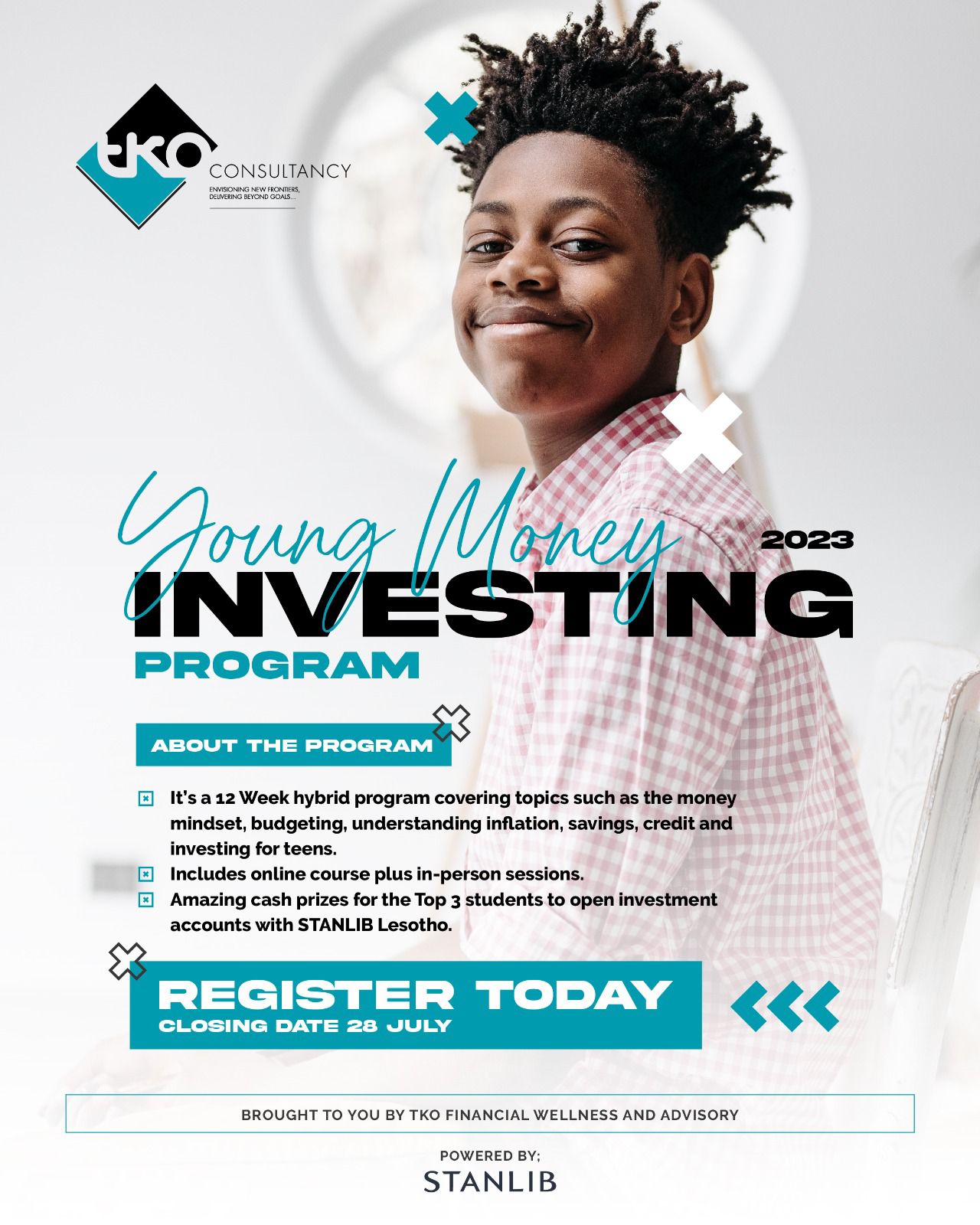 In collaboration with STANLIB Lesotho, we bring the Young Money Investing Program 2023. To apply for the program, complete this form https://forms.gle/pNSxkfZoLAzQwiHy6